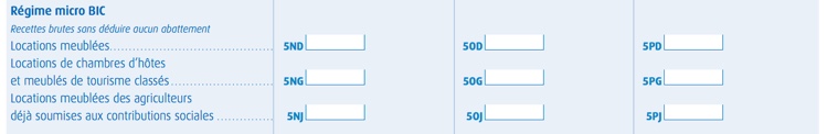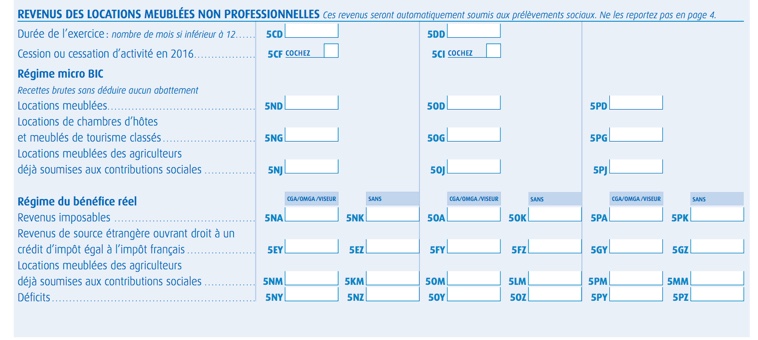 - Vous payez des cotisations sociales à la MSA: saisissez vos revenus dans la rubrique Locations meublées des agriculteurs déjà soumises aux contributions sociales et dans les cases 5NJ, 5OJ ou 5PJ.