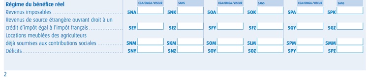 - dans les cases 5NM, 5OM ou 5PM si vous adhérez à un centre de gestion, sous la rubrique CGA ou Viseur,