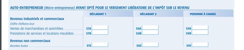 - si vous avez opté pour le régime d'auto-entrepreneur et que vous acquittez l'impôt sur le revenu additionné des cotisations sociales auprès du RSI: vous devrez remplir la rubrique Auto-entrepreneur (ou micro-entrepreneur) ayant opté pour le versement libératoire de l'impôt sur le revenu du formulaire 2042 C PRO.