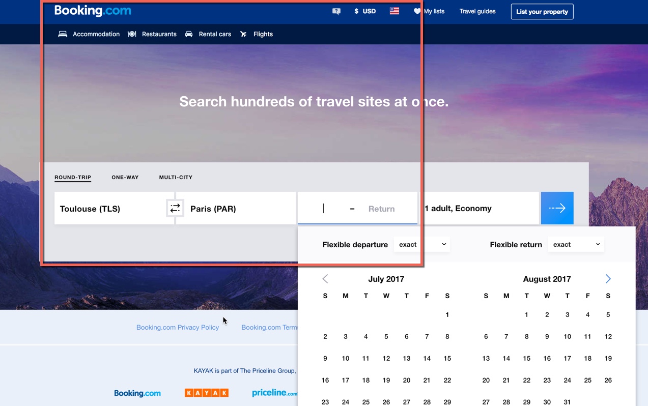 Il y a quelques jours encore, les curieux (dont nous sommes) ont pu apercevoir, au détour d'internet, les nouvelles pages de Booking dans sa version américaine. Si l'on s'en tient à nos observations, le roi de la réservation hôtelière souhaite étendre son emprise sur d'autres secteurs comme les billets d'avion, la location de voitures ou encore celle de tables de restaurants ... sans compter sur les activités et les loisirs qui sont devenus la nouvelle priorité des OTAs.