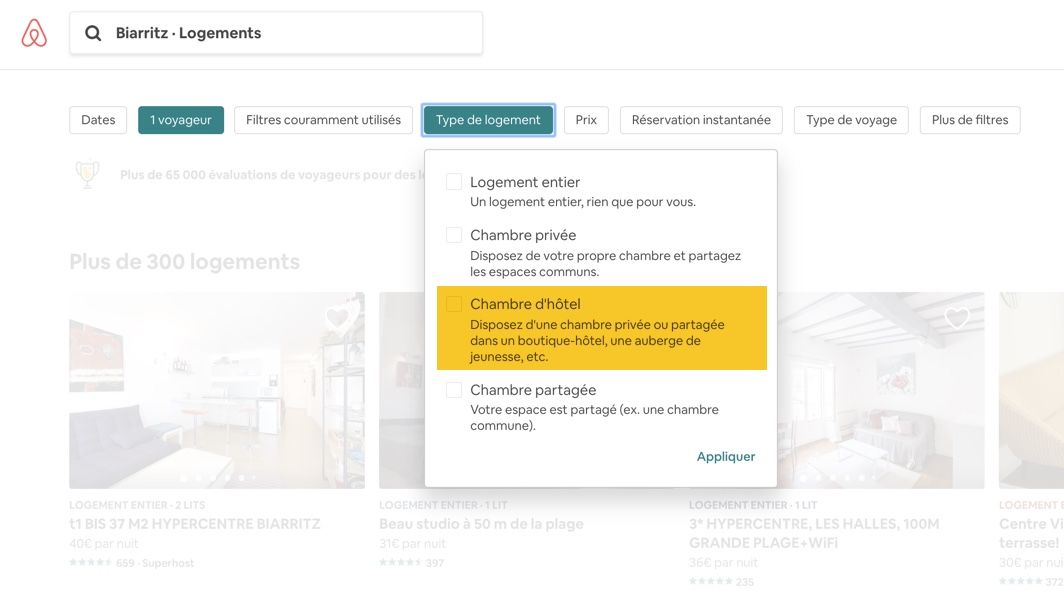 Cette évolution - mineure en apparence - est pourtant une avancée significative dans "l'esprit AirBnB" puisque, désormais, les hôtels figurent à la même place que les locations de vacances "traditionnelles". Si ce changement n'en dit pas plus sur les ambitions à moyen-long terme sur le segment des hôtels, elle est aussi une réponse à Booking qui, depuis longtemps déjà, fusionne dans ses listings les offres d'hôtels, de maisons d'hôtes et de locations de vacances.