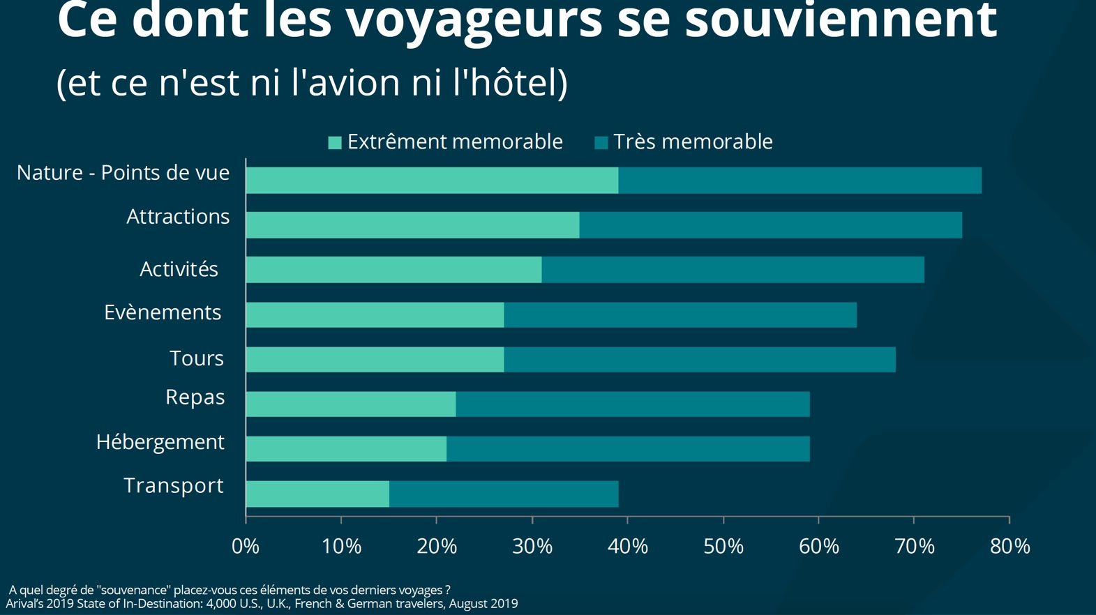 Quand on pose la question à un voyageur quel est le souvenir qui a le plus marqué ses vacances, ce dernier citera en premier lieu tout ce qui a trait à ses activités sur place; l'hébergement et le transport faisant partie des "expériences" les moins mémorables de son séjour ...