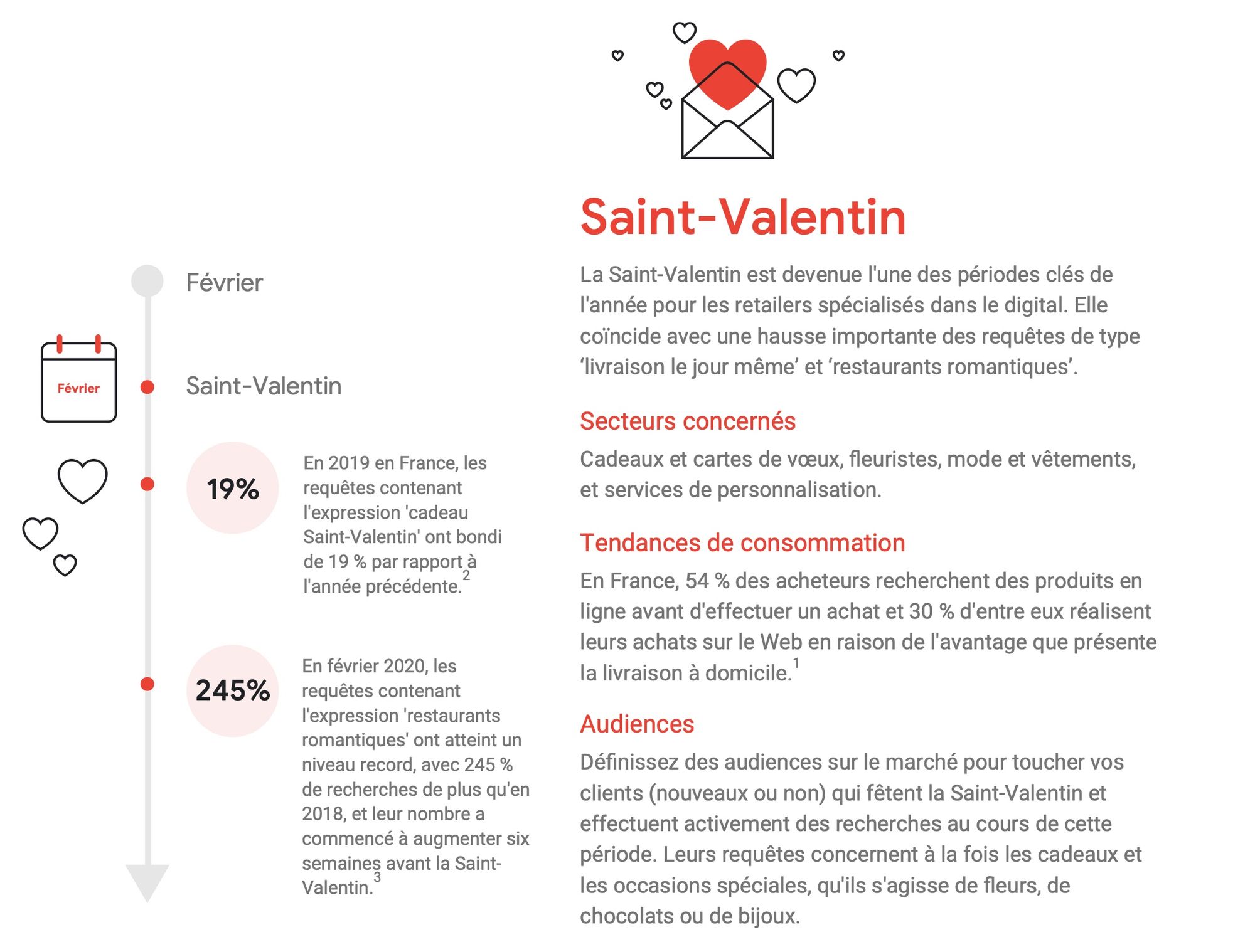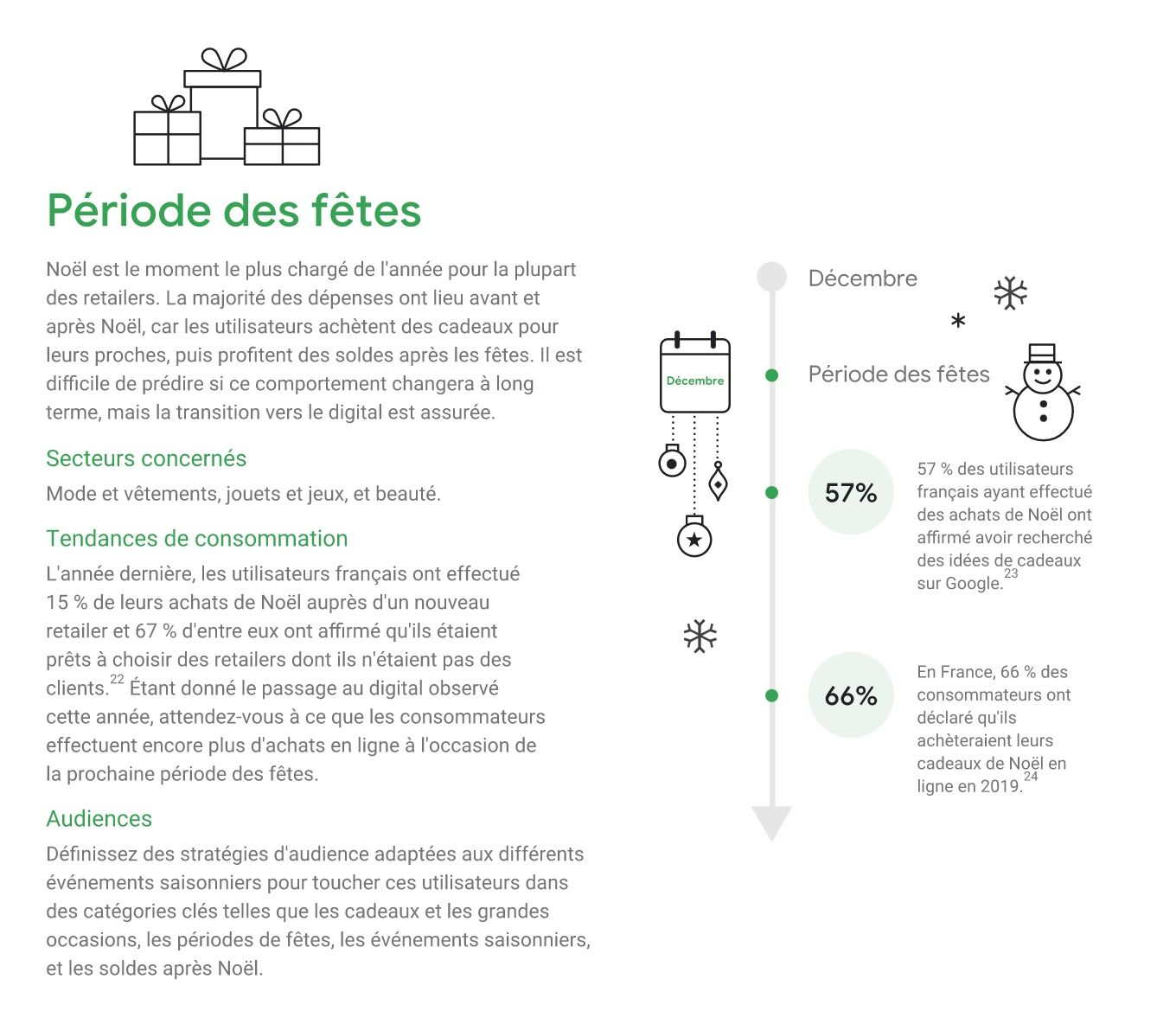 Vouloir profiter de ces grands carrefours commerciaux ne s'improvise pas : vous devez vraiment vous y prendre à l'avance et vous "caler" sur les rythmes et les parcours de vos futurs clients tels que Google les a suivis à la trace. En préparant votre calendrier d'actions et d'offres commerciales, vous allez pouvoir remonter le temps de votre organisation, créer et publier vos offres au bon moment et récolter le fruit de votre travail quand le marché sera à son point culminant !