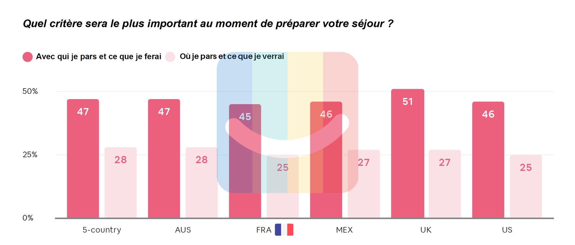 Ce qui importe plus le voyageur (voir ci-dessous), c'est de savoir avec qui il part (amis, famille, etc ...) et ce qu'il va "partager" avec ses accompagnants plutôt que de savoir où il va aller exactement. Et les français, par exemple, n'échappent pas à cette nouvelle tendance de la "destination flexible": 45% d'entre eux privilégient ce qu'ils vont faire sur le "où je vais le faire" ...