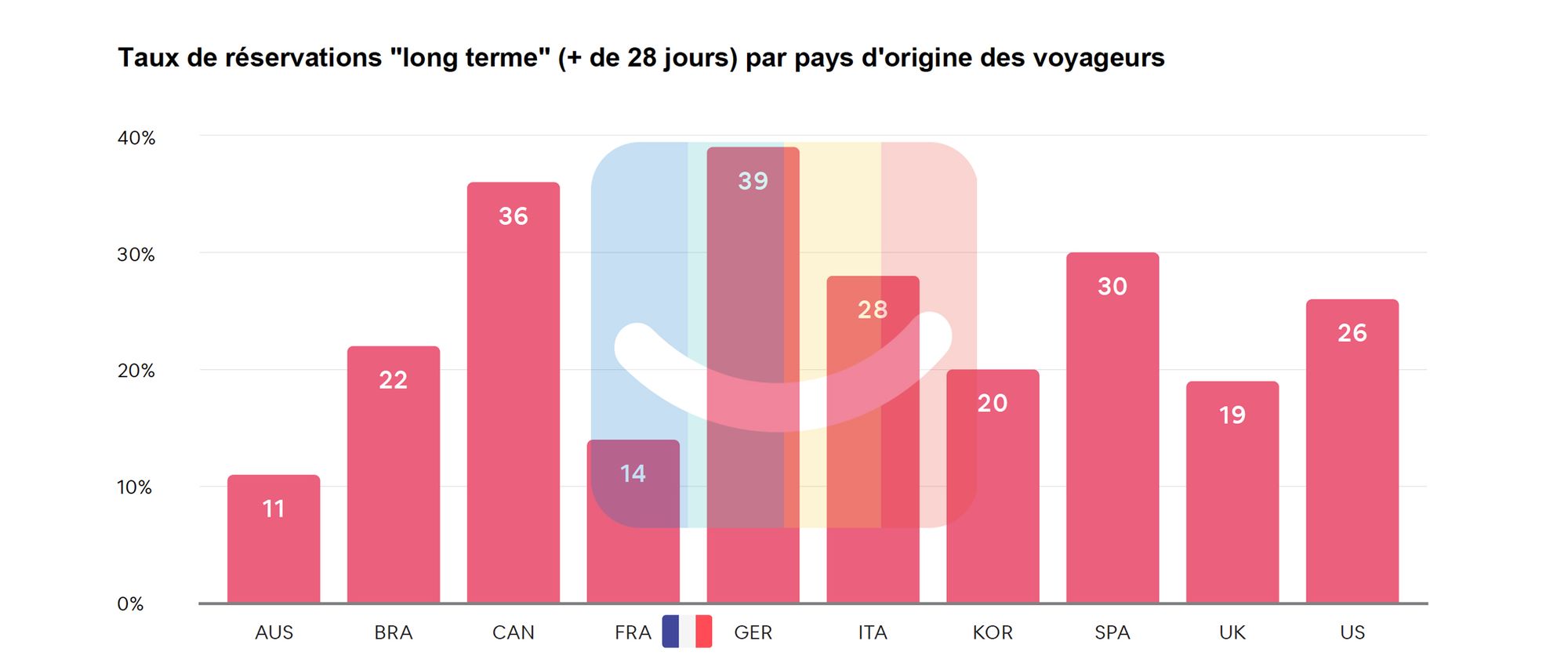 Phénomène nouveau: 25% des séjours réservés au premier trimestre 2021 étaient d'une durée supérieure à 28 jours. Du jamais vu pour le champion mondial de la location. L'an dernier, ces séjours ne représentaient que 14% des "ventes" enregistrées par AirBnB. Cet été, ce phénomène devrait principalement toucher les "grandes villes" où de nombreux guests envisagent, manifestement, d'allier le travail et les vacances, d'embarquer la "petite famille" pour plusieurs semaines dans une autre vie et une "seconde maison". Attention, toutefois, selon les analystes de AirBnB, ce phénomène devrait toucher moins les voyageurs français que les vôtres. Donc, si vous souhaitez attirer de la clientèle "long séjour", pensez plutôt à le faire en direction des publics européens voisins, en particulier, les allemands ...