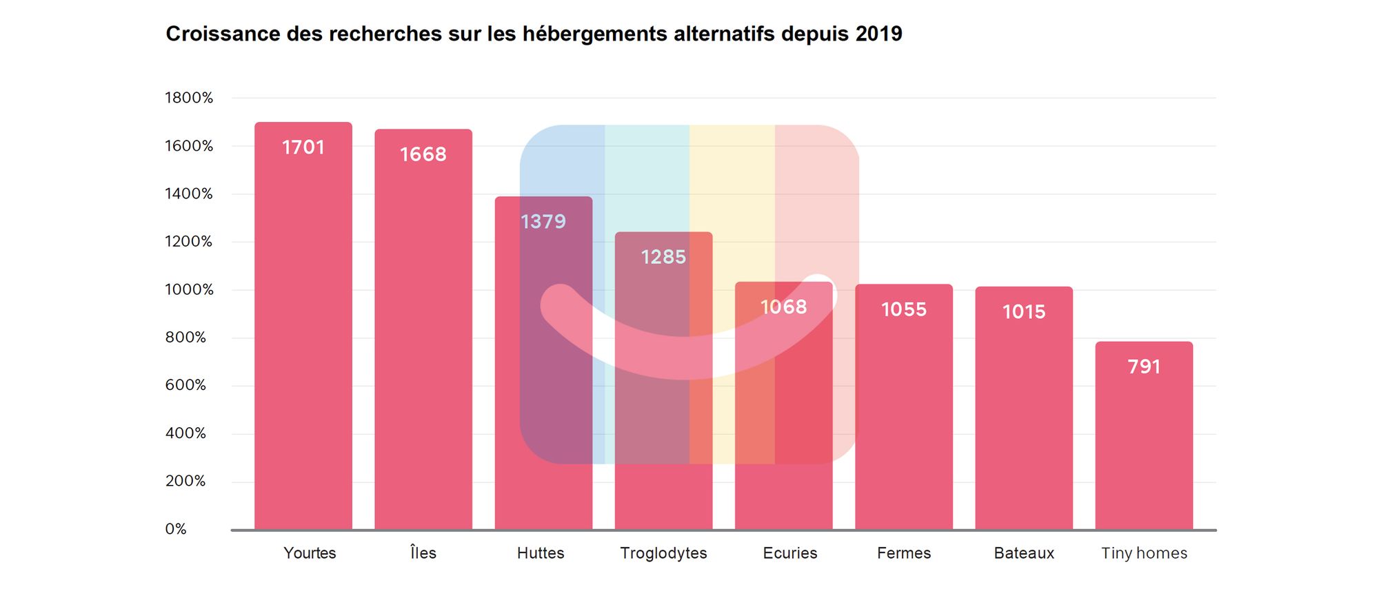 - les hébergements "insolites" connaissent des recherches croissantes époustouflantes (voir ci-dessous),