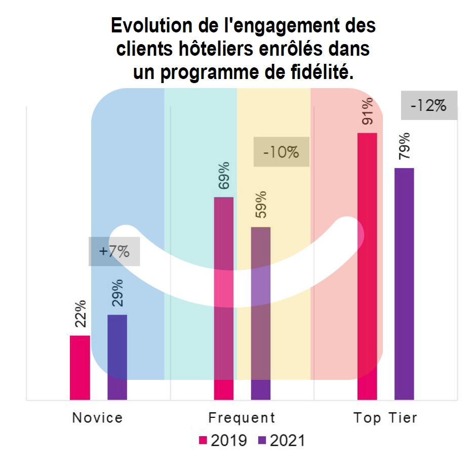 Selon Carolyn Corda, cette tendance peut même se mesurer de manière assez précise en scrutant, notamment, l'évolution du plus haut niveau d'affinité avec la marque hôtelière, entre 2019 et 2021, pour chacun des segments de valeur des voyageurs fréquents. Il en résulte que: