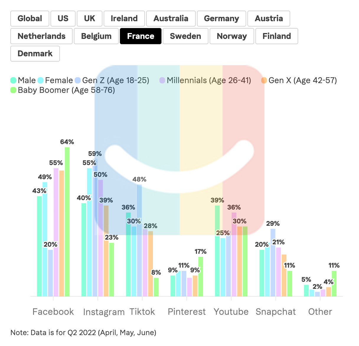 Dans cette étude, sans trop de surprise, facebook apparaît comme le réseau social numéro 1 pour inspirer des réservations. Toutefois, on notera que s'agissant des femmes, ces dernières trouveront une meilleure inspiration sur "Insta" (55% contre 49%). Les scores explosent littéralement chez les "baby-boomers" qui ont fait de facebook leur source d'inspiration principale (23% seulement sur Instagram).