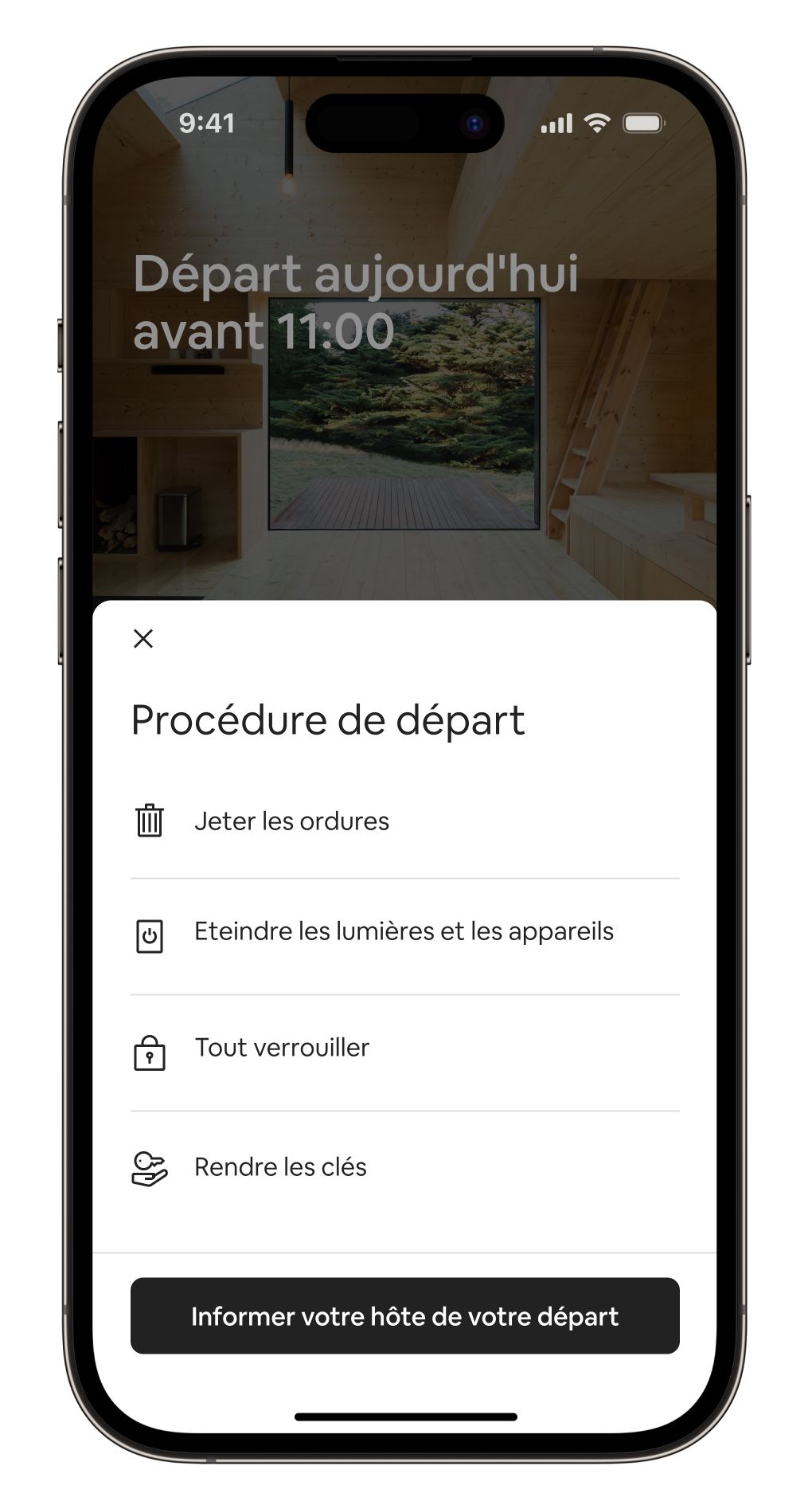 Parmi les 50 nouveautés annoncées pour cet été et la fin de l'année 2023, Airbnb insiste sur la mise en place d'une meilleure information aux voyageurs; notamment, en ce qui concerne les procédures de départ (de check-out): "Désormais, les voyageurs peuvent découvrir les instructions de départ des hôtes directement sur l’annonce avant de réserver. Elles leur sont également rappelées avant qu’ils ne quittent les lieux. Lorsqu’ils laissent leur évaluation, les voyageurs peuvent faire part de toute exigence excessive des hôtes. Et les annonces présentant régulièrement de mauvaises évaluations en raison d’exigences déraisonnables seront supprimées d’Airbnb".