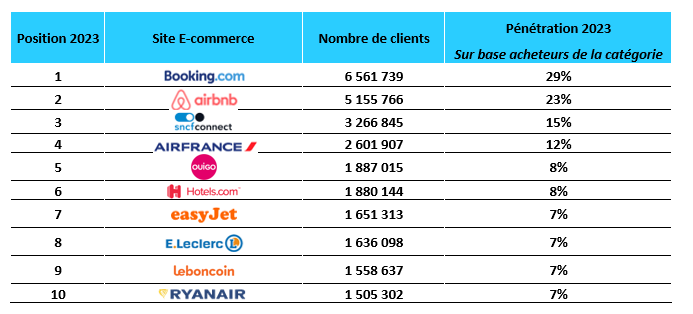Ainsi, Booking dénombrerait 6,5 Millions de clients - rien qu'en France ! - et Airbnb, 5,2 Millions; soit presque 1,5 fois plus que le site de la SNCF et d'Air France qui, pendant de très nombreuses années, ont été les leaders de la catégorie.