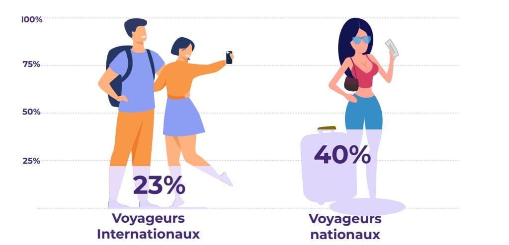 L'évolution asiatique (où les OTAs remontent sur les parts de marché en opposition aux réservations directes) semble, cependant, directement liée à la reprise des voyages internationaux qui montre bien que les voyageurs étrangers préfèrent réserver leur hôtel en passant par un OTA. Ce qu'a pu chiffrer l'étude annuelle (voir ci-dessous).