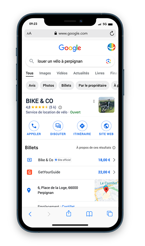 Cela peut sembler une évidence, mais il y a "occuper" et "occuper". De nombreux loueurs de vélos négligent leur implication sur Google (car on ne parle pas seulement de référencement, voir plus loin). En vacances, Google s'impose principalement lors de recherches rapides via un téléphone mobile (80% des cas) et sur ses supports natifs que sont Google My Business ou encore Google Maps (et son dérivé, Waze, qui appartient à Google). Cela signifie que votre présence sur ces supports doit être optimisée à tous les niveaux: