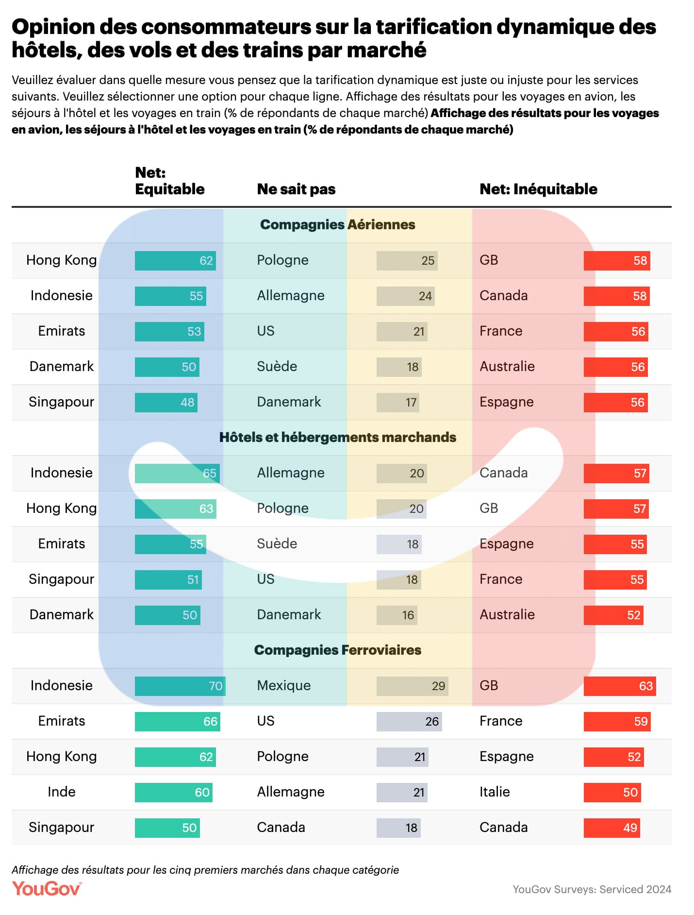 Les prix qui font le yo-yo (comme en ce moment, sur Paris, à l'approche des JO) interpellent de nombreux voyageurs qui ont compris qu'il leur faut jongler entre différents sites, différentes dates ... voire même en réservant une fois, avant d'annuler, puis de re-réserver lorsque les mêmes prix ont baissé ... Bref, si les prix dynamiques n'ont presque pas de secrets pour eux, leur perception peut varier d'un pays à l'autre tandis qu'en France près d'un français sur deux les juges fair du point de vue de la relation commerciale ...