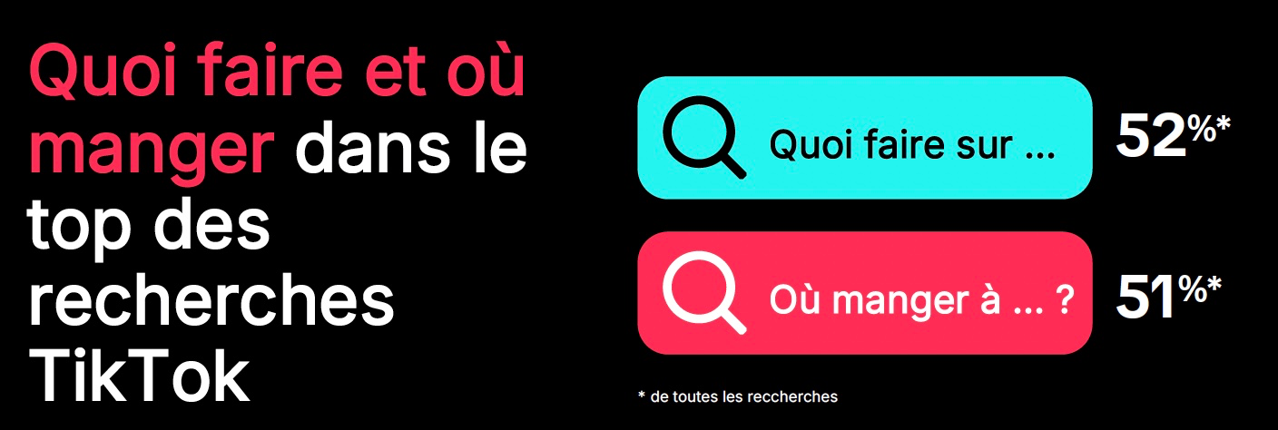 Mieux ! 75% des utilisateurs de TikTok l'utiliseraient même comme moteur de recherche (unique) pour trouver "quoi faire, où manger, etc" sur la destination concernée ou à proximité de leur hébergement ...