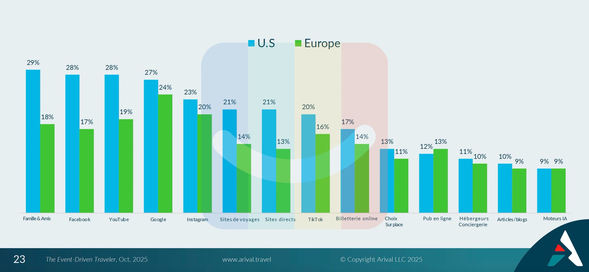 - Si, aux États‑Unis, 73 % des voyageurs ont assisté à un événement en 2024, en Europe, ce chiffre s’élève à 60 %.