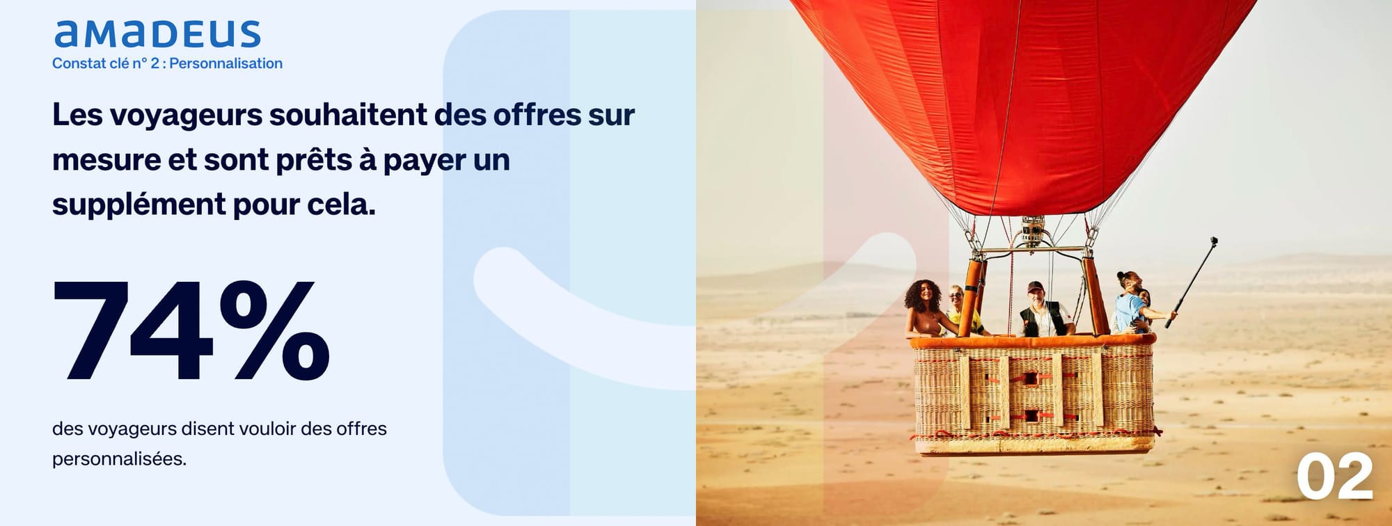 Toujours selon Amadeus, son dernier rapport pointe que 74% des voyageurs veulent une expérience personnalisée. Mais attention : ils ne veulent pas plus de complexité. Seulement, plus de pertinence. Et la nuance est majeure !