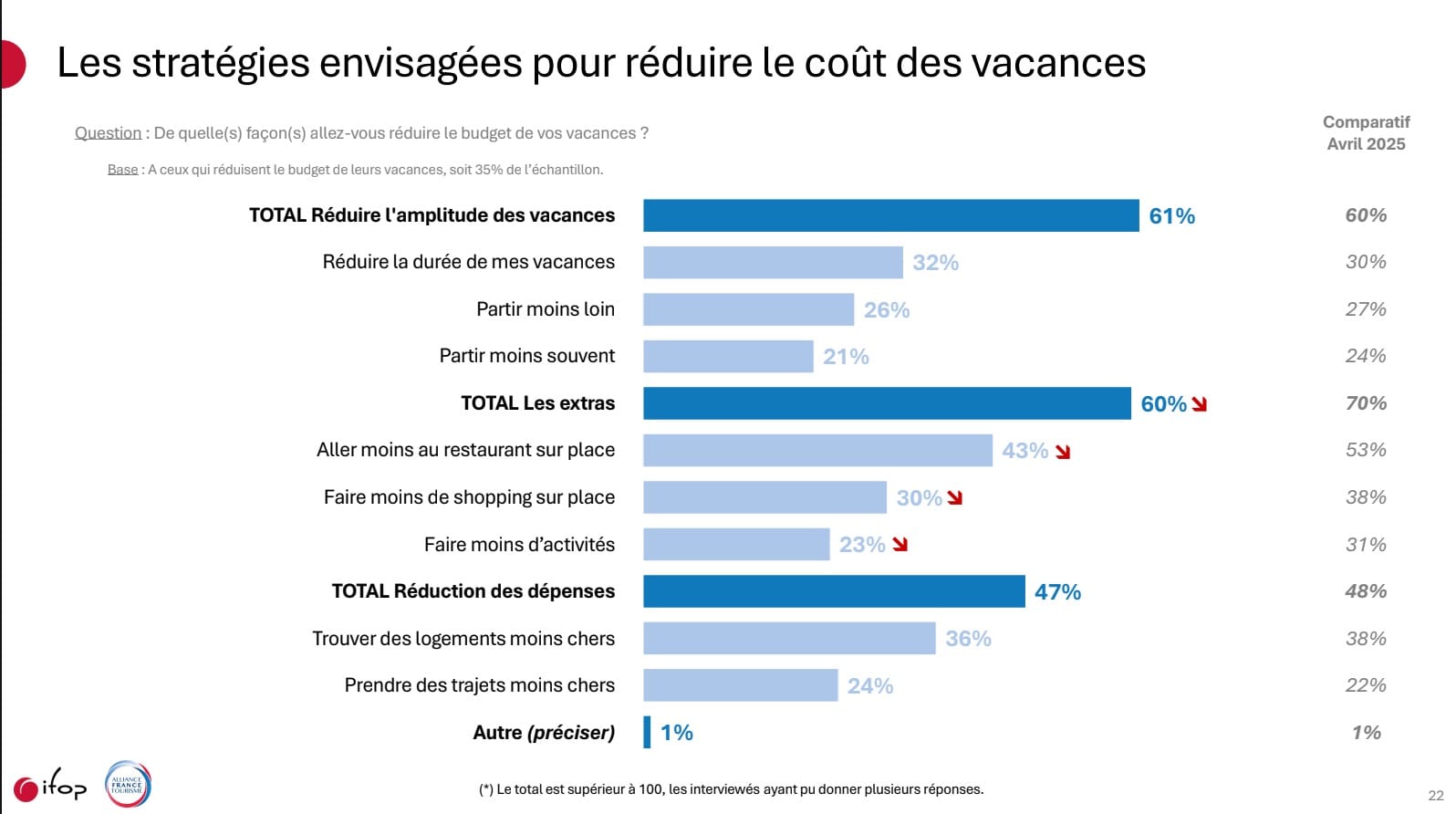 Il faut dire qu'avec 11% d'augmentation moyenne du prix du carburant (jusqu'à quand ?), le bas de laine (et le budget vacances) des français semble de plus en plus entamé au fur et à mesure que le conflit moyen-oriental s'éternise. Et les annonces de réduction de vols chez les compagnies aériennes (pour cause de kérosène trop onéreux) ne laissent pas trop de place à l'optimisme pour les prochaines semaines ...